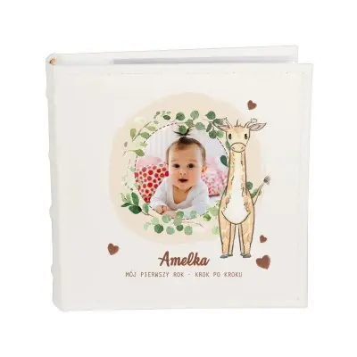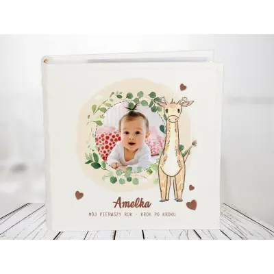 To wyjątkowy prezent z okazji, roczku, urodzin. Pozwoli na przechowanie najcenniejszych wspomnień dziecka. Okładka zawiera zdjęcie maluszka, jego imię, ozdobną ramkę oraz ozdobne grafiki.