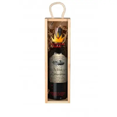 Elegancka, personalizowana skrzynka na wino została wykonana z wysokiej jakości drewna sosnowego, z wieczkiem ze szkła akrylowego i wygodnym uchwytem z naturalnego sznurka.  Jest to świetna oprawa dla każdego trunku, który chcemy podarować w prezencie.
