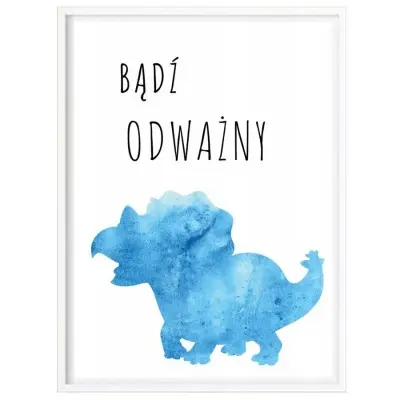 Plakat z oryginalną grafiką dinozaura i motywującym tekstem jest fantastycznym prezentem na chrzest lub narodziny dziecka. To również piękny element dekoracyjny pokoju dziecka :).