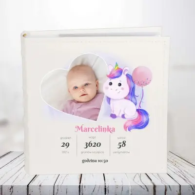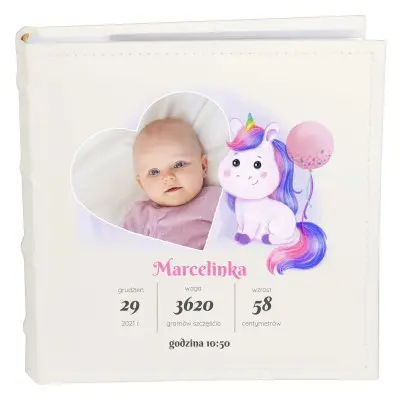 ALBUM METRYCZKA NARODZIN ZE ZDJĘCIEM – to wyjątkowy prezent z okazji Chrztu Świętego, narodzin maluszka, roczku, urodzin. Pozwoli na przechowanie najcenniejszych wspomnień dziecka z całego życia. Zdjęcie dziecka oprawione jest w białą ramkę w kształcie serca. Zamieszczono na niej dodatkowo ozdobne grafiki.
