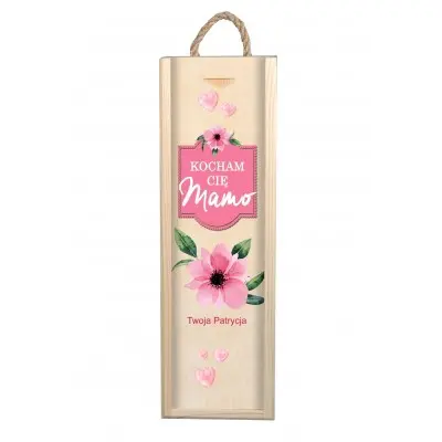 Szukasz pomysłu na wyjątkowy prezent na dzień matki lub na inną wyjątkową okazję? Drewniana skrzynka to indywidualny i niepowtarzalny upominek, który z pewnością ucieszy Twoją mamę. Dzięki personalizacji, prezent nabierze oryginalnego charakteru i będzie wyjątkową pamiątką na lata. Może przydać się nie tylko do przechowywania alkoholu, ale także na trzymanie w niej innych przedmiotów i drobiazgów. Zawiera nadruk w różowej kolorystyce z napisem „Kocham Cię mamo” oraz grafiką kwiatów.