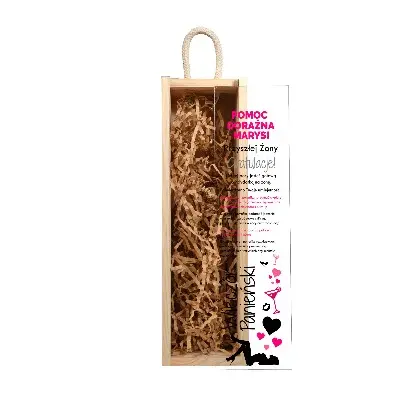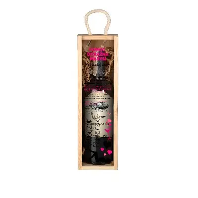 Elegancka, personalizowana skrzynka na wino została wykonana z wysokiej jakości drewna sosnowego, z wieczkiem ze szkła akrylowego i wygodnym uchwytem z naturalnego sznurka.  Jest to świetna oprawa dla każdego trunku, który chcemy podarować w prezencie.