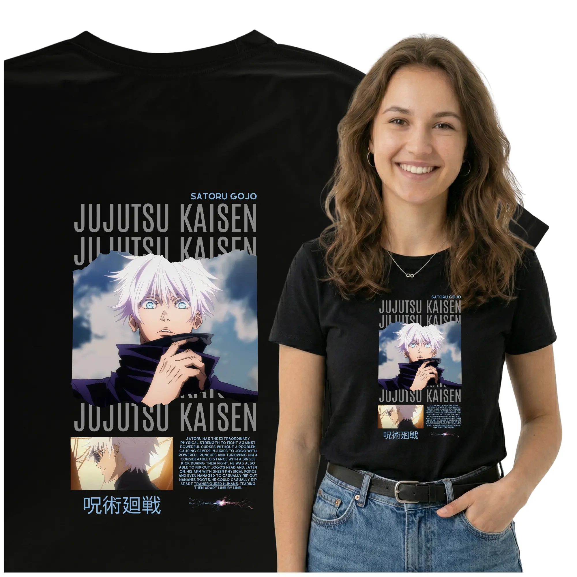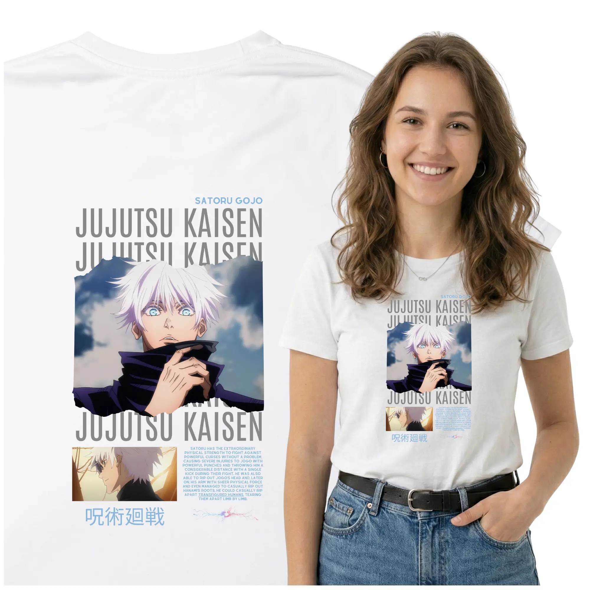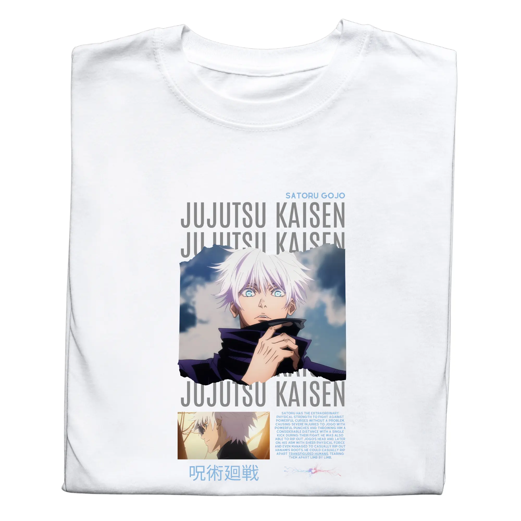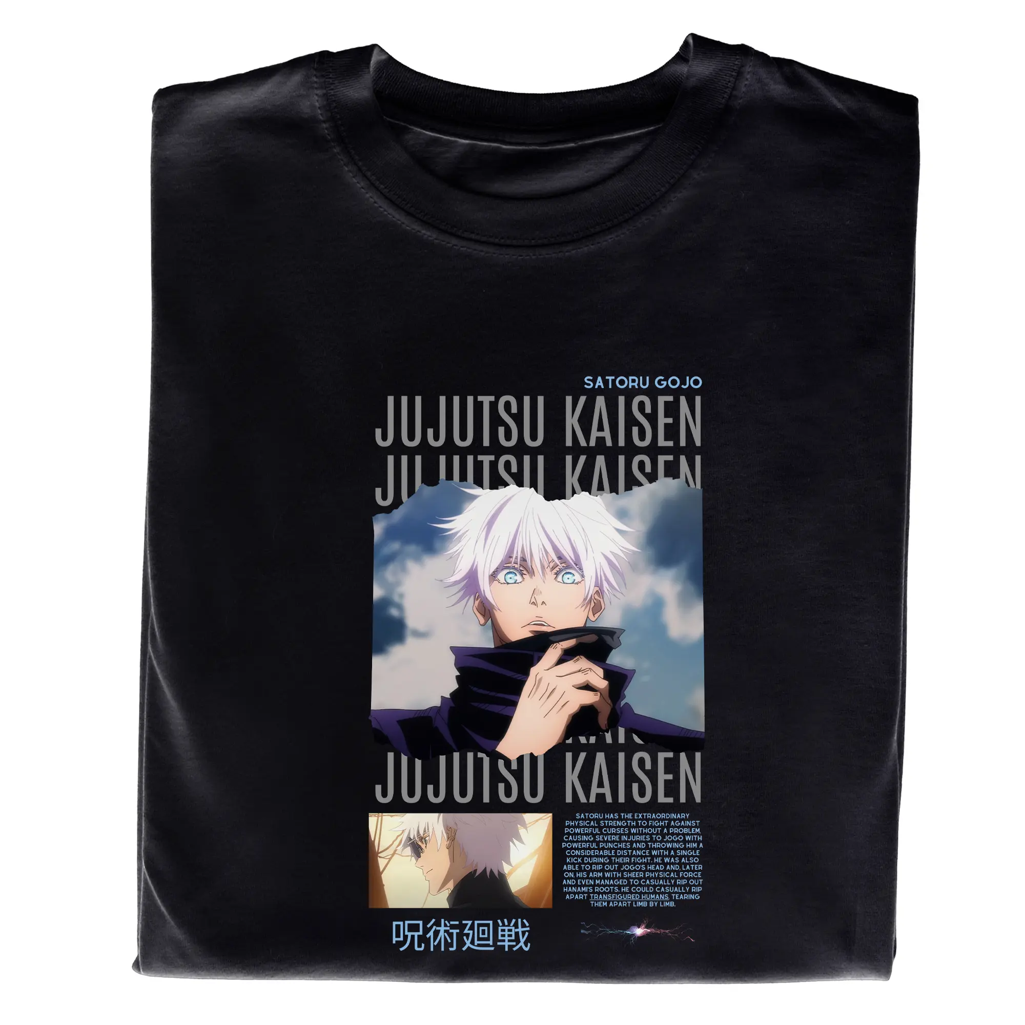 Wyjątkowa koszulka Gojo Satoru to must-have dla każdego fana anime Jujutsu Kaisen i mangi. Stylowy t-shirt Jujutsu Kaisen z kultowym bohaterem pozwala wyróżnić się w tłumie i wyrazić swoją pasję do ulubionej serii.
