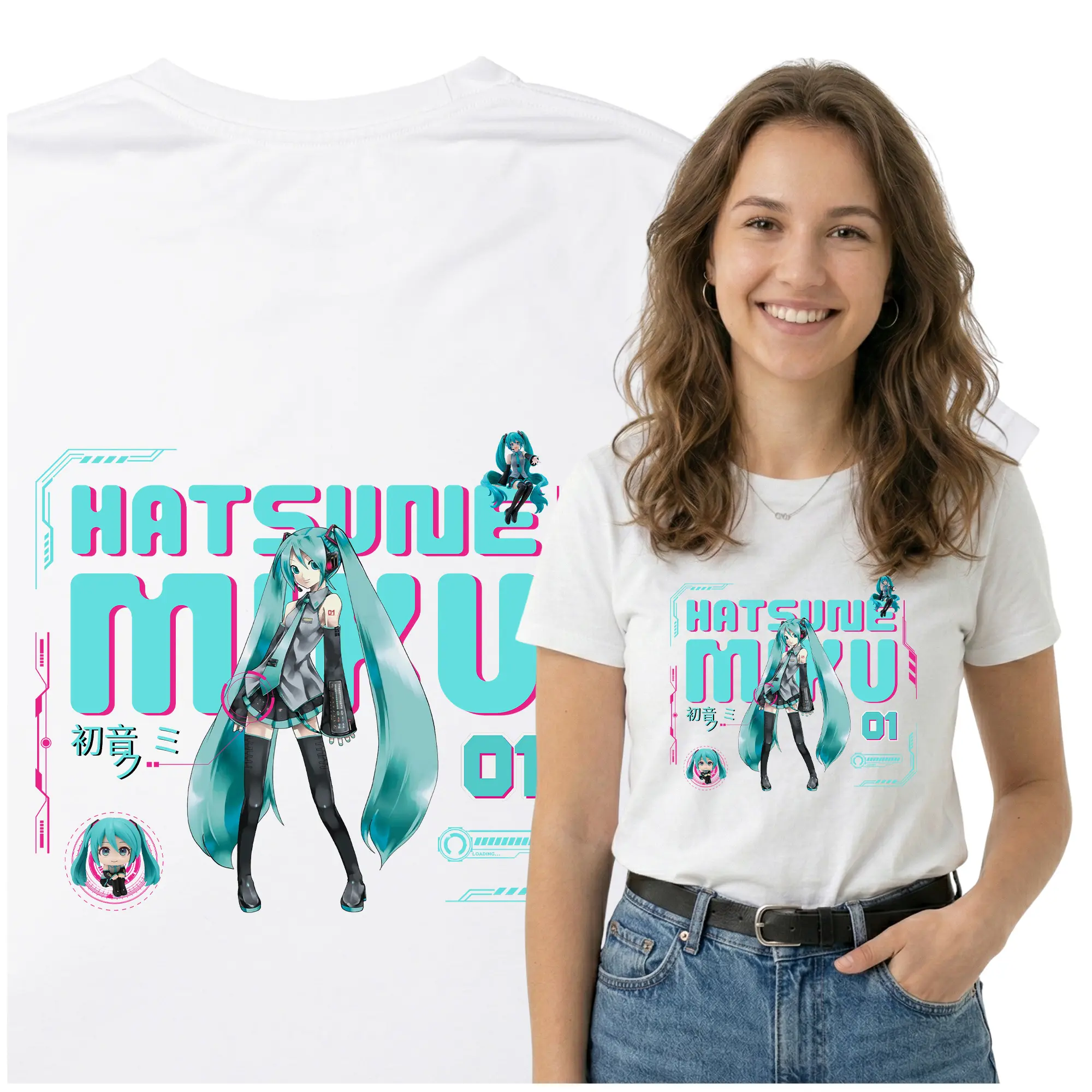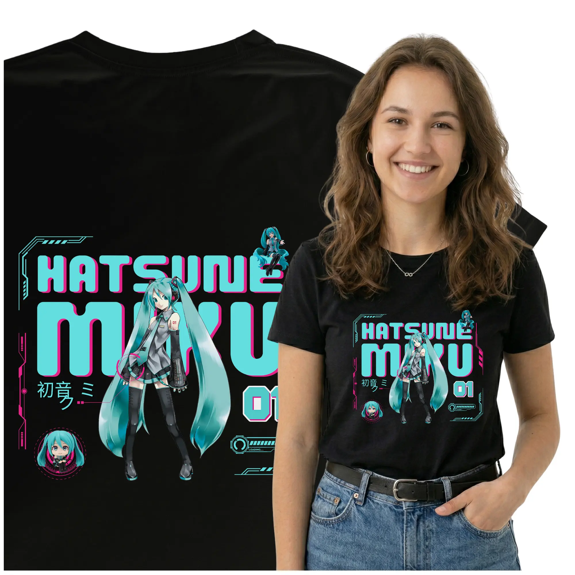 Stylowa koszulka z nadrukiem Hatsune Miku to świetny wybór dla każdego fana japońskiej popkultury, anime i muzyki Vocaloid. Wyjątkowy design z kultową postacią sprawia, że t-shirt przyciąga uwagę i pozwala wyrazić swoją pasję w oryginalny sposób.