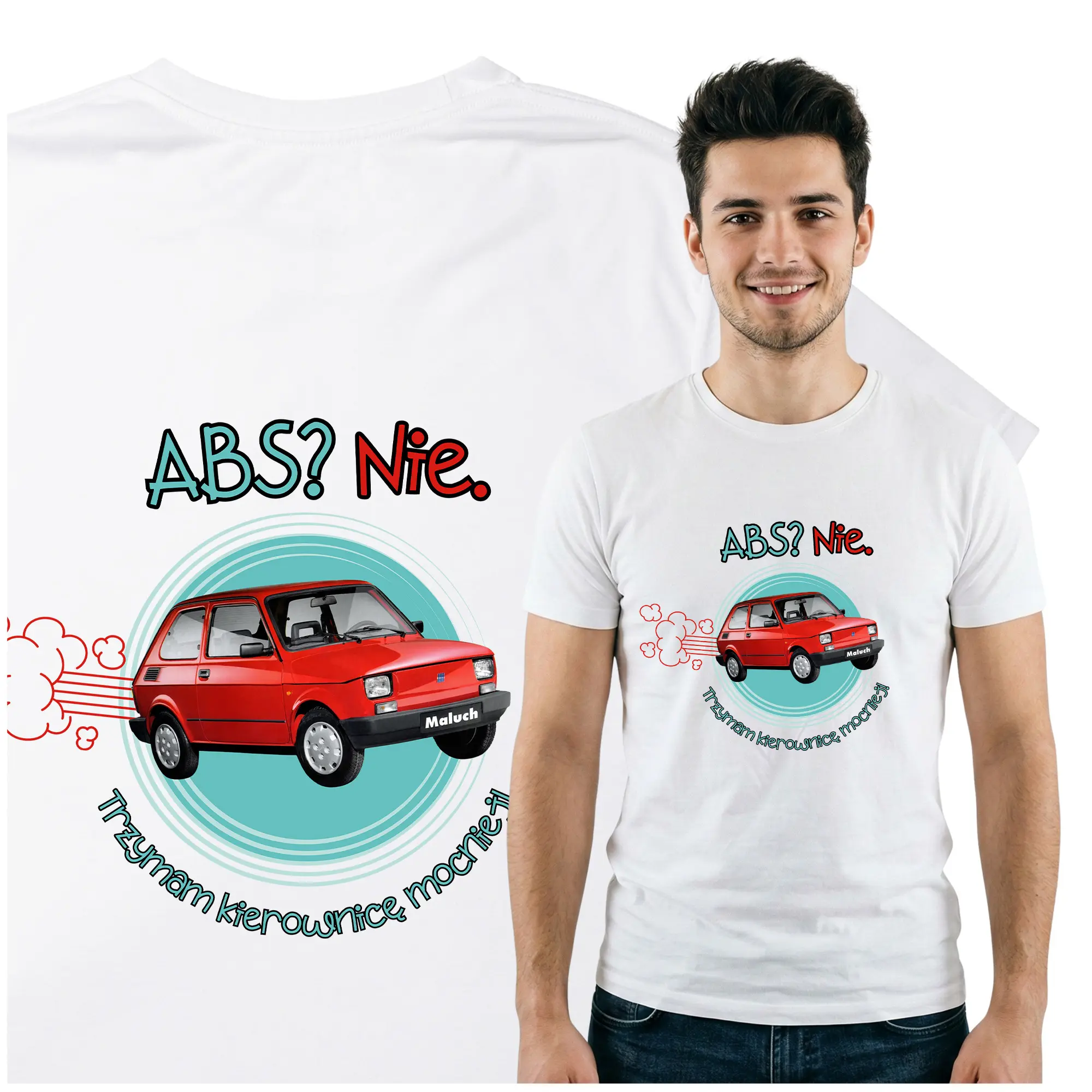 Stylowa koszulka Maluch Fiat 126p to doskonały wybór dla każdego miłośnika klasycznej polskiej motoryzacji. Nadruk inspirowany kultowym samochodem Fiat 126p przywołuje klimat dawnych lat i pozwala pokazać swoją pasję do legendarnych aut z polskich dróg. Koszulka została wykonana z wysokiej jakości, wygodnego materiału, który zapewnia komfort noszenia na co dzień – w pracy, na spotkaniach ze znajomymi czy podczas zlotów motoryzacyjnych. Trwały nadruk zachowuje wyraziste kolory nawet po wielu praniach, a klasyczny krój sprawia, że t-shirt pasuje do każdego stylu.