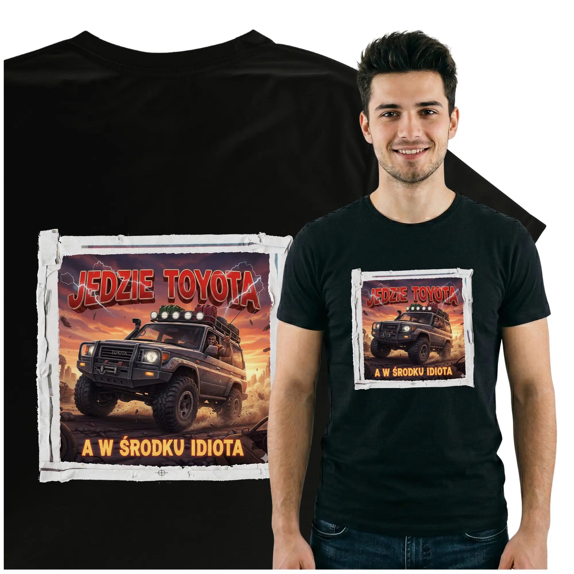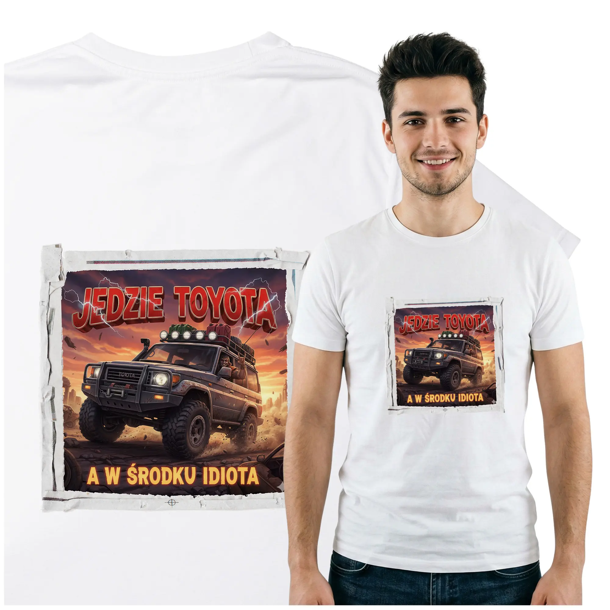 Oryginalna koszulka z zabawnym nadrukiem nawiązującym do marki Toyota to świetny wybór dla każdego miłośnika motoryzacji i fanów tej legendarnej japońskiej marki. Humorystyczna grafika sprawia, że t-shirt przyciąga uwagę i doskonale nadaje się do codziennego noszenia. Koszulka została wykonana z wygodnego i trwałego materiału, dzięki czemu zapewnia komfort przez cały dzień – w pracy, na spotkaniach ze znajomymi czy podczas motoryzacyjnych wydarzeń. Wysokiej jakości nadruk jest odporny na pranie i długo zachowuje swój wygląd.