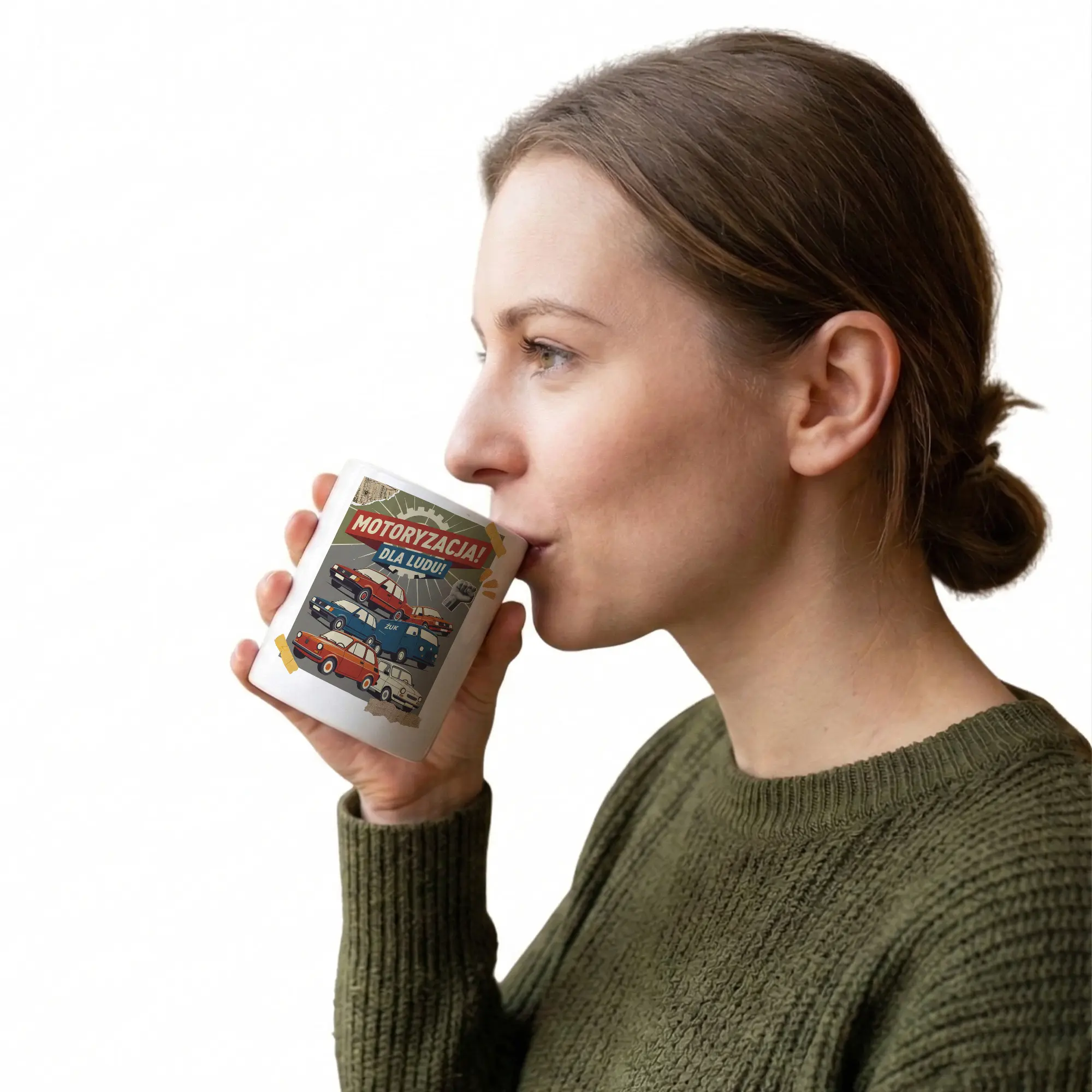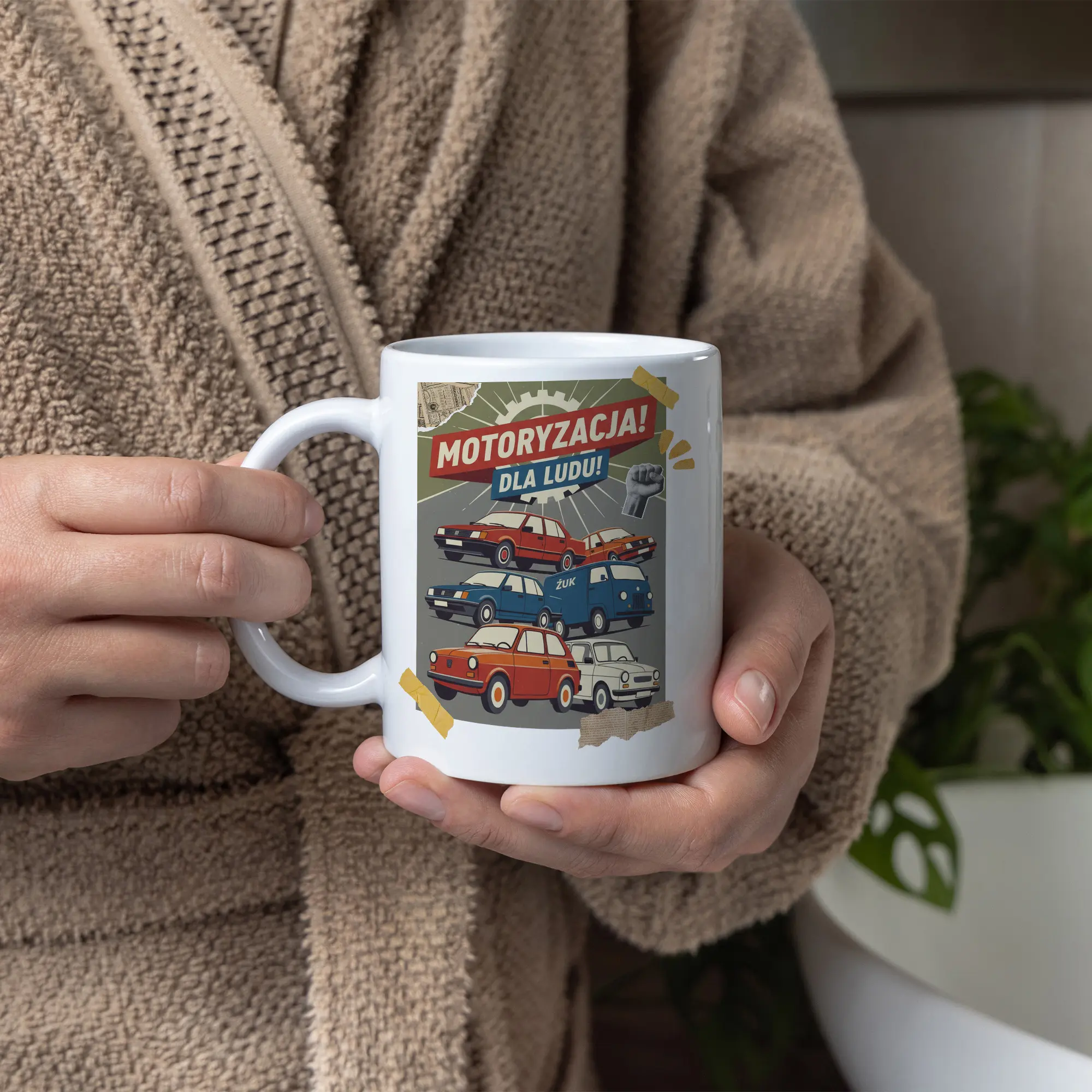 Stylowy kubek Motoryzacja PRL to idealny gadżet dla każdego miłośnika klasycznych samochodów z czasów PRL. Nadruk przedstawia kultowe auta, które stały się symbolem epoki i pasji do motoryzacji retro, przywołując nostalgię dawnych lat.