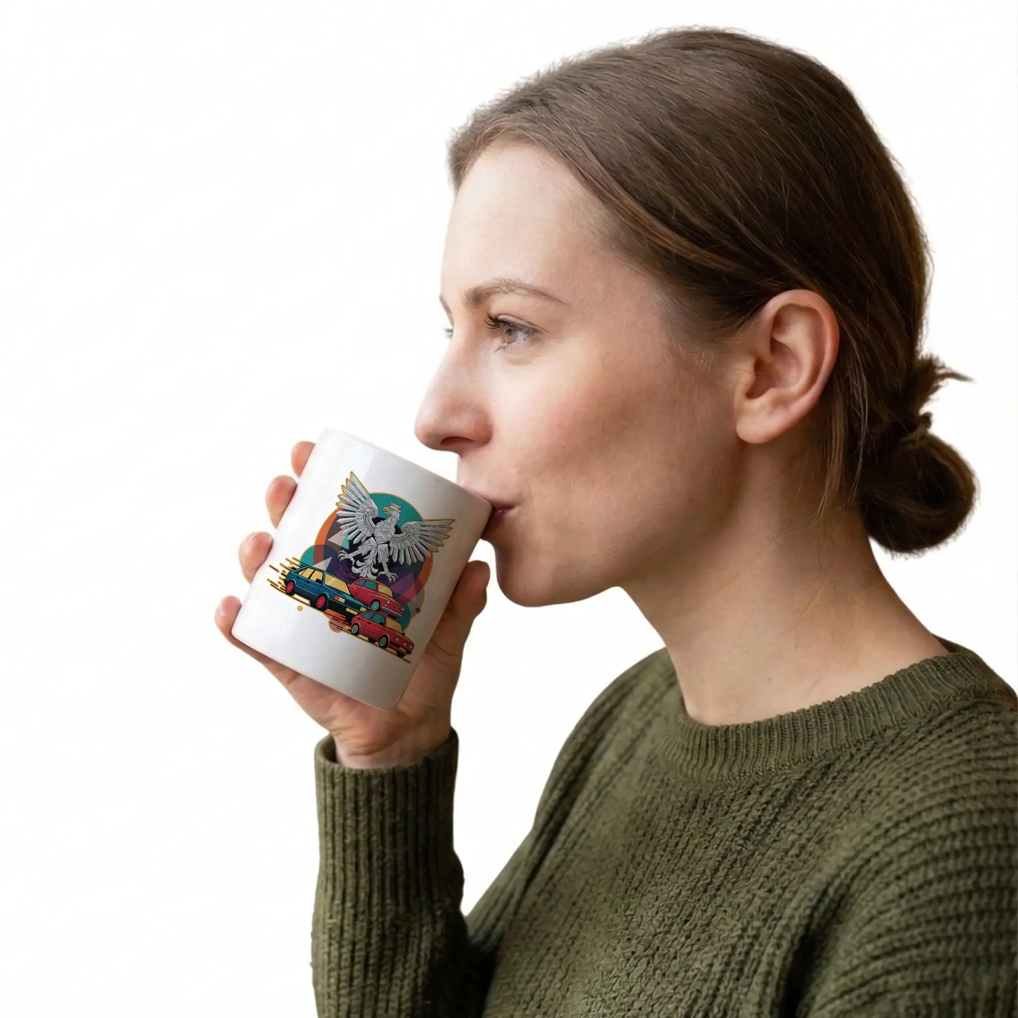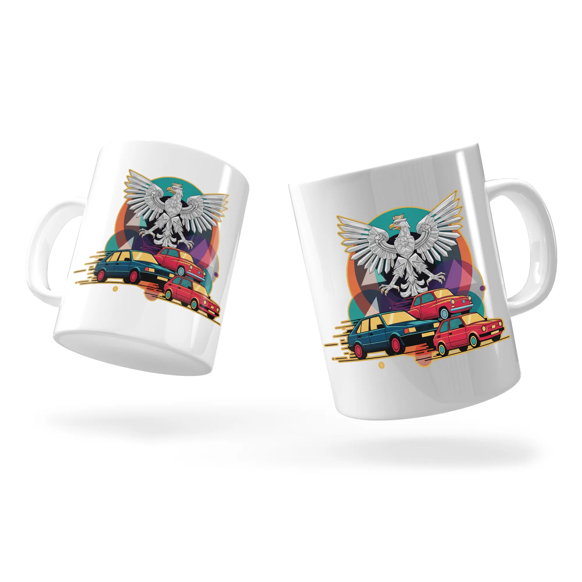 Stylowy kubek Patriotyczne Auta to doskonały gadżet dla miłośników klasycznych samochodów i polskiej motoryzacji, którzy cenią połączenie pasji do aut z patriotycznym akcentem. Nadruk przedstawia kultowe modele samochodów z polskim charakterem, idealnie oddając klimat dawnych lat i dumę z motoryzacyjnej historii Polski. Kubek świetnie sprawdzi się do codziennej kawy, herbaty lub ulubionego napoju – w domu, w pracy czy podczas spotkań z przyjaciółmi i rozmów o samochodach. Wyrazista grafika nadaje mu wyjątkowy charakter i wyróżnia się wśród innych kubków.